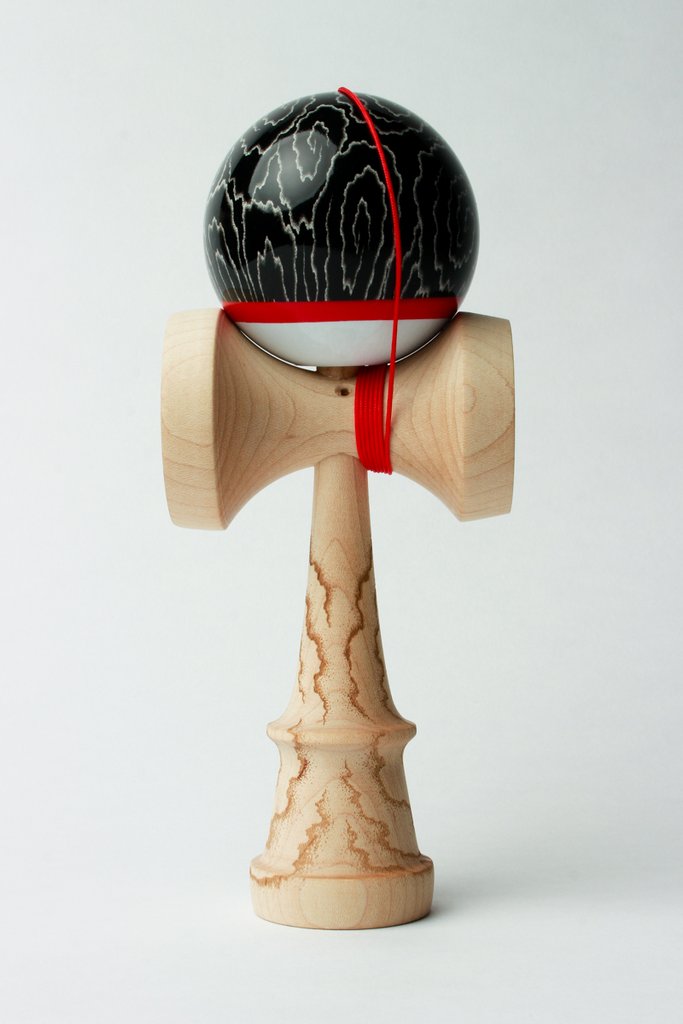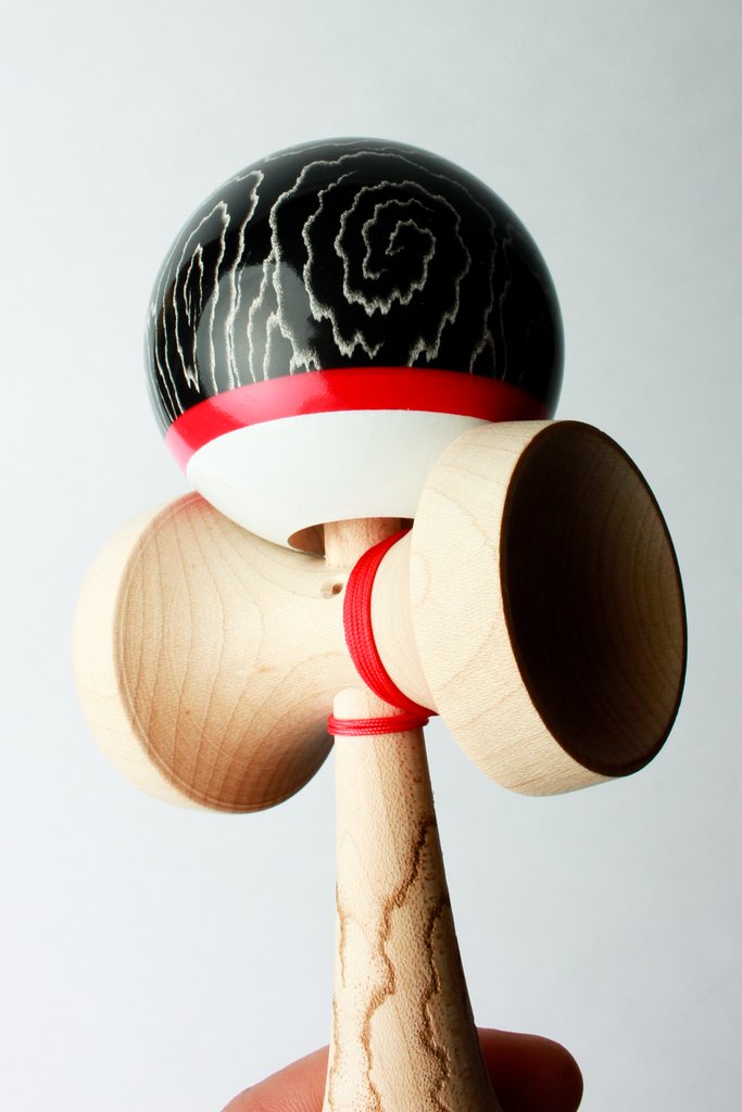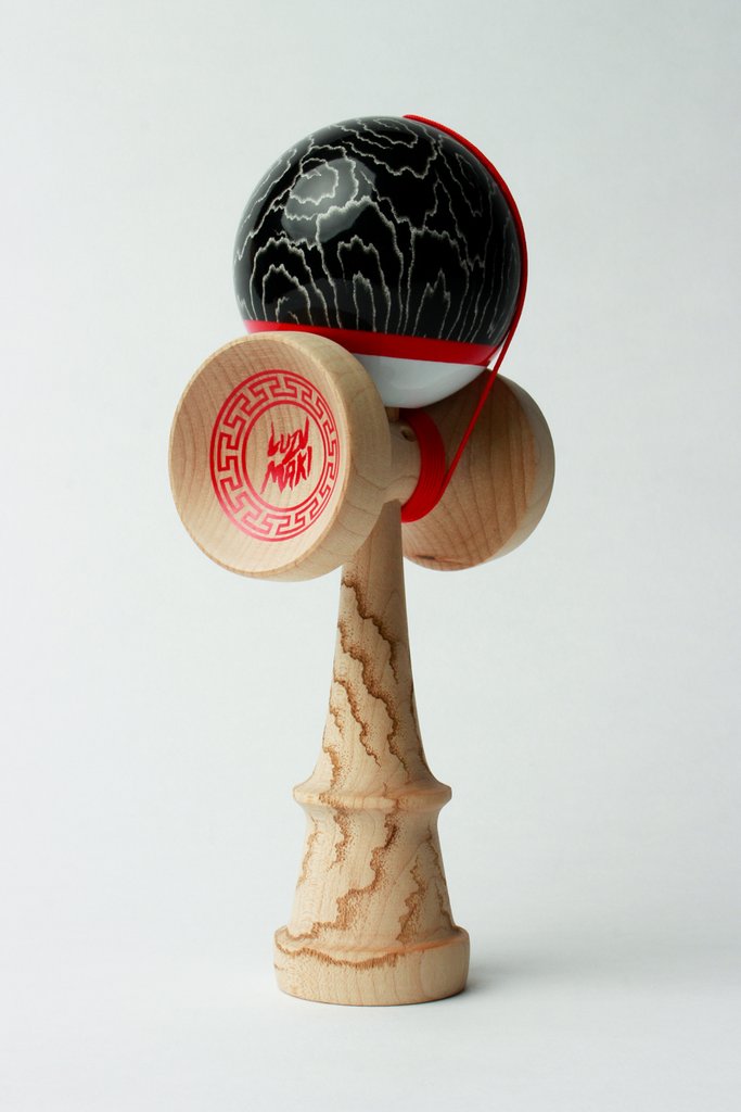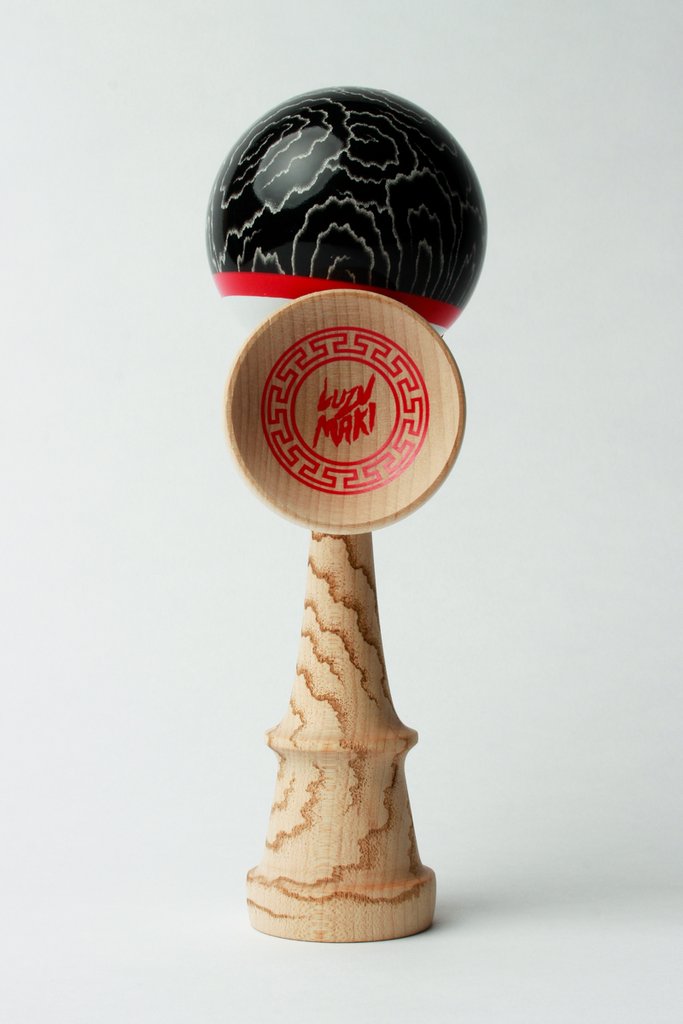 Lu’s signature pointilated, spiral artwork stems from his influence of many things; tattoos, ghost stories, anime etc. and has gained great popularity within the kendama community. Many have seen his meticulous artwork on custom tamas, shoes, skateboards and more, but we felt like we could take it to the next level and actually produce a whole line with custom artwork, kens and of course Lu’s signature style.
