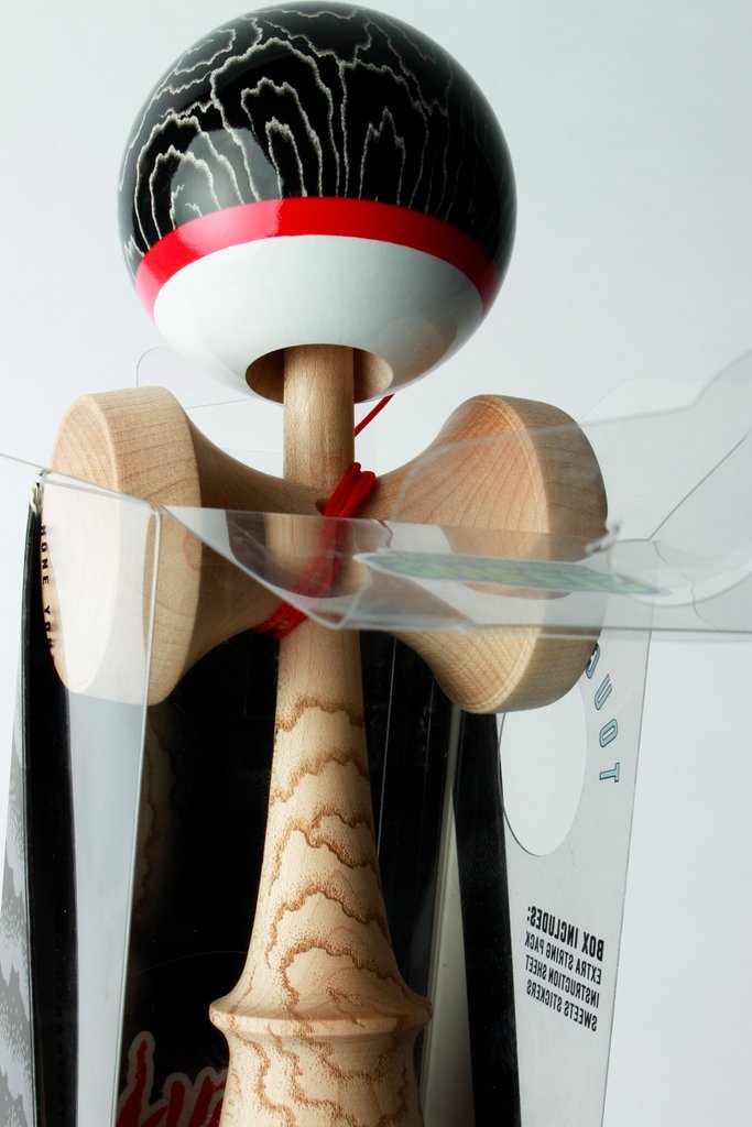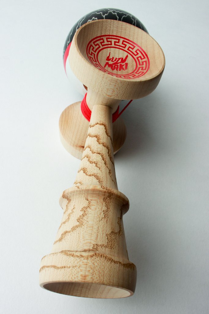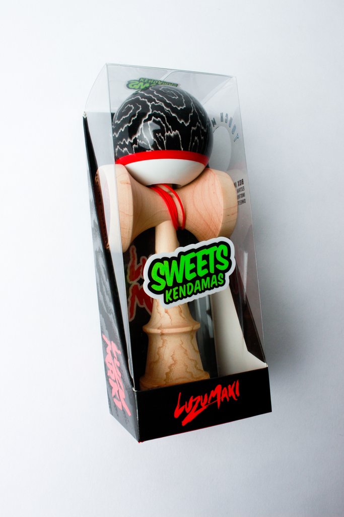 The LUZUMAKI x SWEETS consists of a maple BOOST Ken with custom wood burned spiral and logo printed in the big cup, premium string w/ a spinner bead. and the maple tama is finished with Prime Sticky Clear.